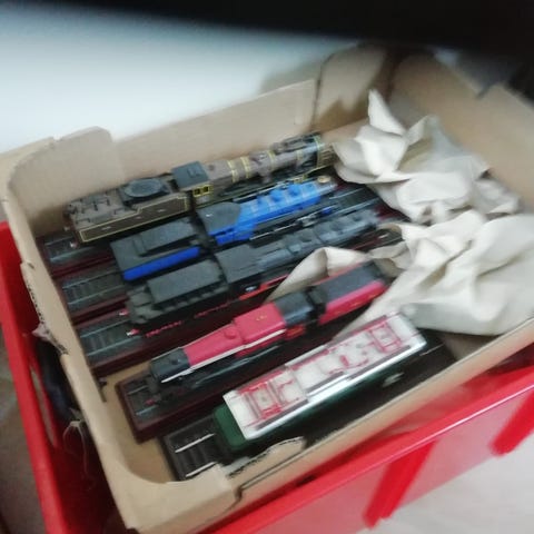 Vognene er i forskellig stand - 3 af vognene mangler hjul.
