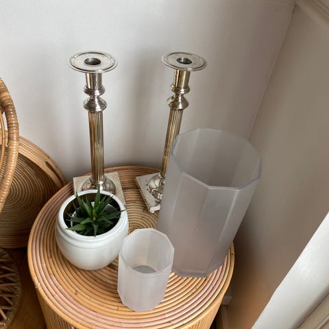 Sæt med 3 vintage lysestager der kan stables - kasse medfølger. Der står på kassen, at der er 4 lysestager, men jeg har kun 3.
