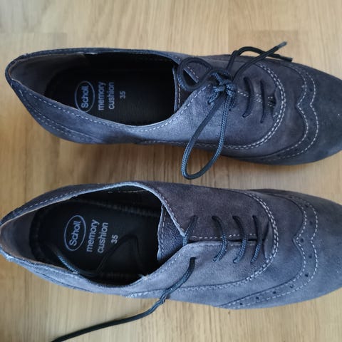 Som ny. Brugt få gange. Lidt smalle. Sort ruskind. Gummisål. Skoene er meget lette.