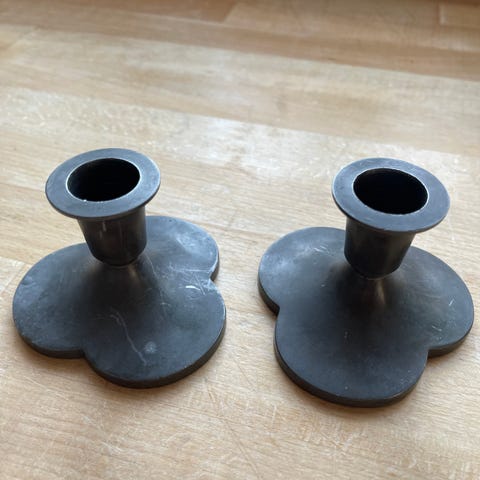 2 SMUKKE NORSKE TIN LYSESTAGER FRA 70SERNE