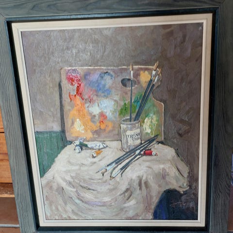 Lille fint maleri der fortjener en bedre ramme. kan evt sendes med gls. Mål 44 x 36 cm.