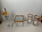 2 fine mette DITMER fyrfadsstager med guldkant og smuk mette DITMER glaskrukke med låg, måler: 11 x 11 x 11 cm