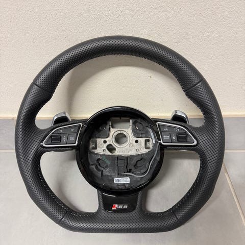 Audi A6 & A7 c7 S-line rat, med sprit ny kvalitet perforeret læder og hvid syninger, med paddle shift, jeg har sammen rat uden paddle skift, airbag med sort Audi logo eller airbag med chrome Audi logo. Passer til A6 & A7 2011-2018år model. Pris - 4000kr Fast pris. Tak.