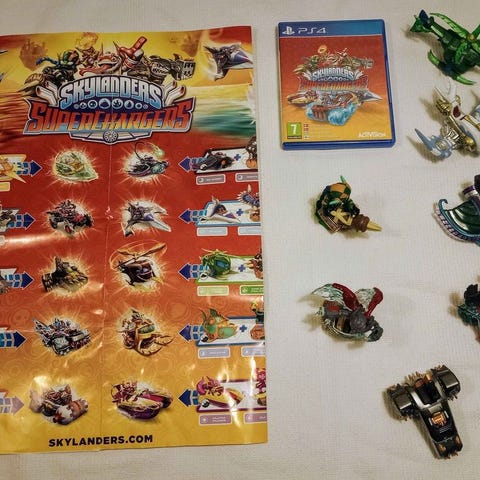 2 stk. sensei (golden queen + King pen) 4 stk. creation crystals, Skylanders Imaginators spil til PS4, 2 portaler samt 72 stk. blandede figurer. De markerede på billederne er solgt.