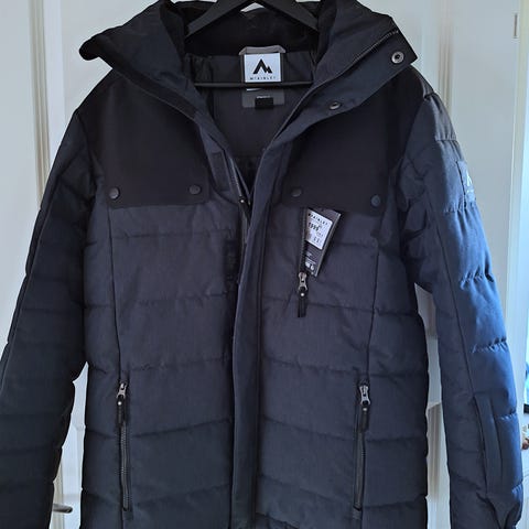 Købt, brugt et par gange, faldt ikke i smag og vasket. Hættes kan foldes ind i kragen. Måler ca. 56 cm fra skulder- til skuldersyning.