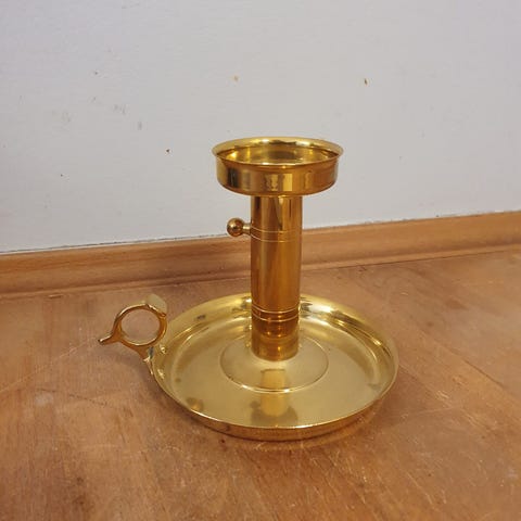 Kammerstage, Messing, Højde 11,5 cm, diameter 11 cm.