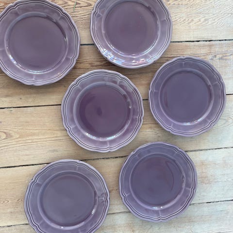Sødt lille frokost-tallerken-sæt á 6 frokost-tallerkner fra MF Design i keramik. Tallerkenen har en gul kant med blå firkantede mønstre, som giver et unikt og farverigt udtryk. Den er velegnet til både mikroovn og opvaskemaskine, hvilket gør den praktisk i hverdagen.