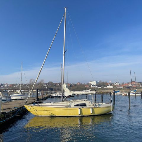 En racerudgave af den første sejlbåd som jeanneau byggede. Det er en utrolig rumlig båd pga dens bredde så man kan sagtens overnatte 4-5 personer ombord. Jeg købte den i meget dårlig stand og har selv repareret de seneste år. Den fungerer som den skal og sejler rigtigt fint. Sejlende og brugte men virker fint. Både. Ligger i Mårup havn på Samsø så skriv endelig hvis i ønsker en fremvisning. Bud modtages.