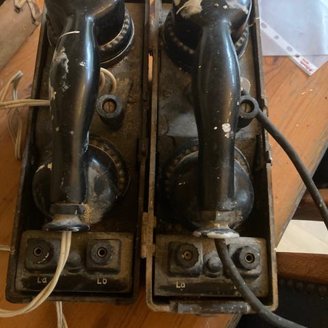 - den til venstre på billedet er en dansk felttelefon M/51L uden lædertaske, og din anden er en amerikansk EE-8 Field Phone.