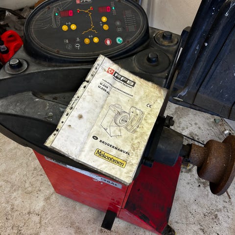 Facom U67 hjul afbalancering apparat, lille og handy, håndbetjent, Virker perfekt, vægtklodsreol medfølger indeholdende 200 klodser 5-60g.