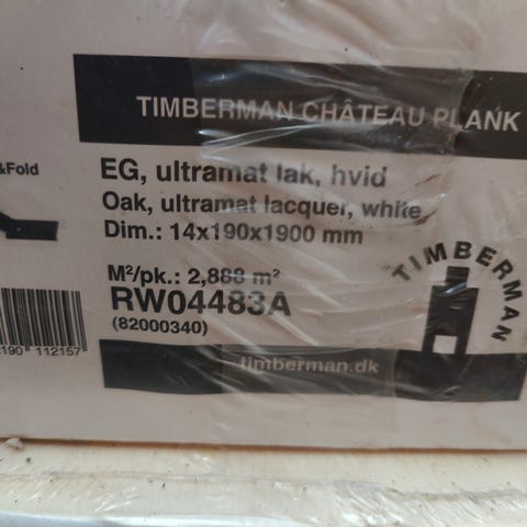 3 pakker af Timberman klikgulv Chateau Plank eg børstet ultramat lak natur sælger. Overskud fra renovering sag. Opbevaret i opvarmet og tørt rum. Uåbent emballage. Fejler intet.