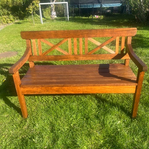 Drachmann bænk fra Skagerak, Trip Trap. Nyspulet og olieret. Står flot og stabilt. Bredde 127 cm.