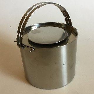 Lille Stelton Cylinda-line Isspand i rustfrit stål med låg Designet af Arne Jacobsen. Længde: 13 cm / 5.12 inch Højde: 11 cm / 4.33 inch Bredde: 13 cm / 5.12 inch