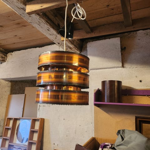 Brutalistisk 70'er lampe i syreskåret messing, højde og diameter 30 cm. Designet af Svend Aage Holm Sørensen.