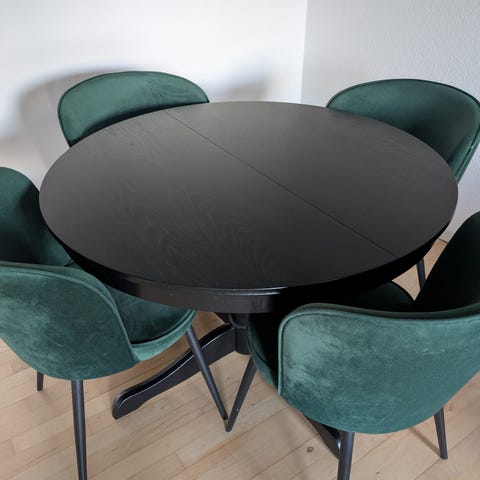 Spisebord IKEA Vihals, med udtræksplade og fire stole