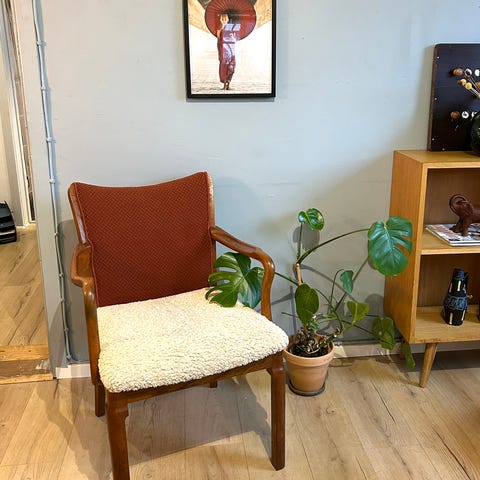 Armstol med besværlig ryglæn .