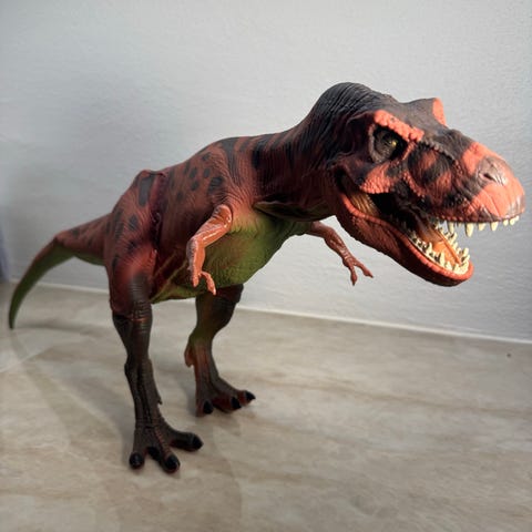 Stort stykke skin fra dinosauren T.rex spiser af.