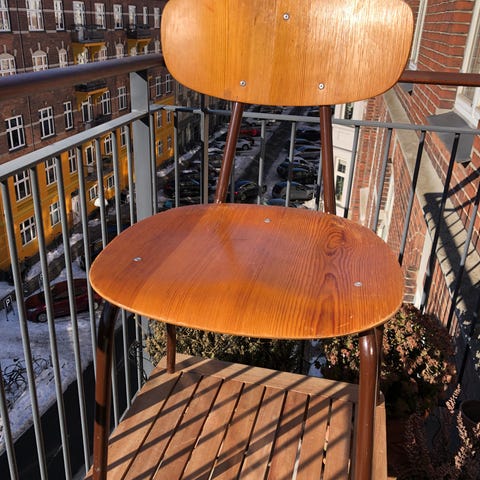 Mørkt massiv træ med de fineste flet detaljer på sæde og i ryg.