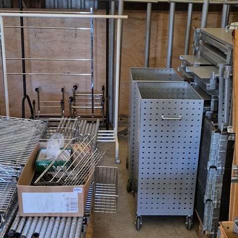 Hylder til rillepanel i pulverlakeret grå.