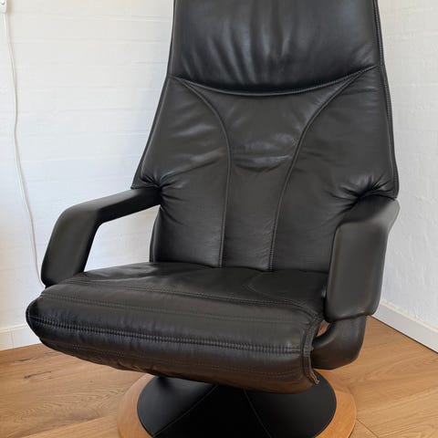 Rigtig lækker Berg lænestol i sort læder med mulighed for ligge position / nypris 20.000 sælges med kvittering for 7000 / 3 år som ny