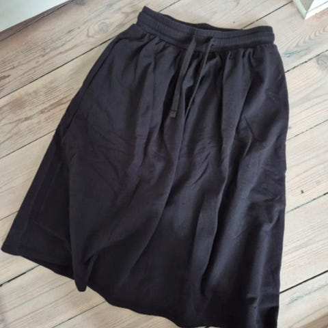 Flot mellemlang nederdel i str L fra Moshi Moshi Mind. Flot brun farve med sort og hvid strib. God brugt stand uden pletter eller andet.
