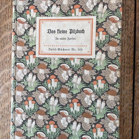 Lille bog i hellærred udgivet af Kasseler Hafer-Kakao-Fabrik, Hausen & Co. u.å. - men skulle være fra 1909 - meget smukke tegninger af svampene malet i deres naturlige omgivelser.