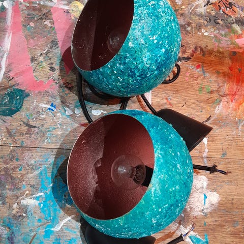 Anden loftslampe, Kobberlampe med 2 stk. fatninger. Inkl. 2 dekopærer (bemærk forskellig slags).