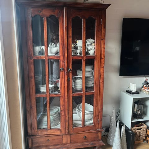 måler 175x42x39 cm der er 4 glas hylder med til det fra røgfrit hjem det kan hentes i Silkeborg