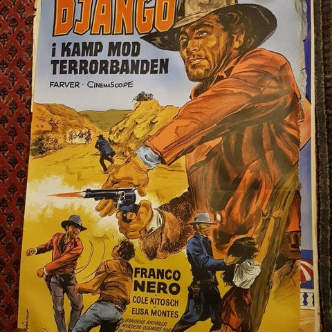 Hans Werner Henze El Cimarron plakat med rød og sort design. Plakaten har et dramatisk grafisk udtryk med motiver af kæder og fødder, der formidler temaet om den bortløbne slave. Velegnet til dem, der interesserer sig for musik, historie eller kunst.