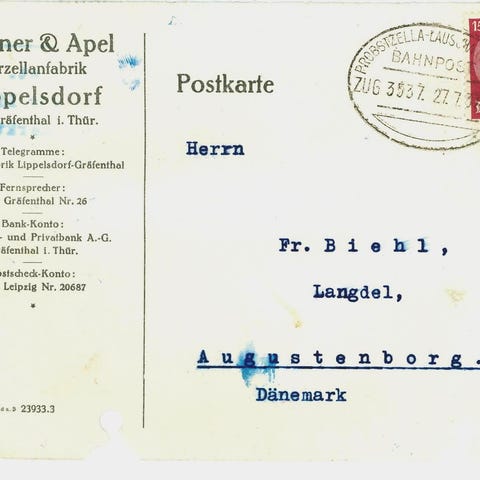 To Postopkrævnings-Adressekort med forskellige luxus brotypestempler Aarhus 26.11.1935 og 28.10.1937. Med arkivhuller.