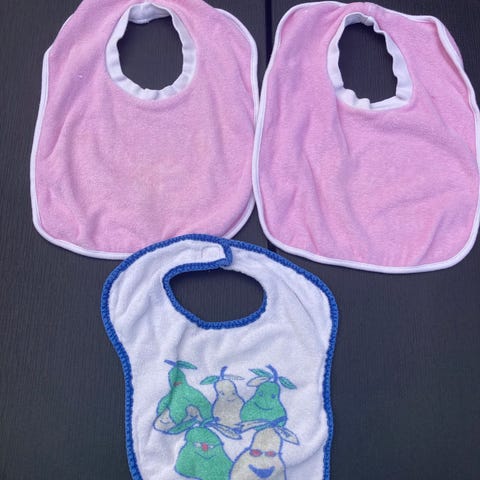 Mummy/daddy hage- eller savlesmæk. Aldrig brugt, men vasket. Kommer fra røg- og dyrefrit hjem.