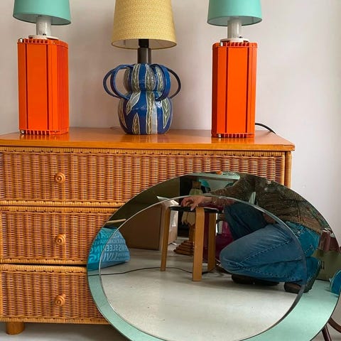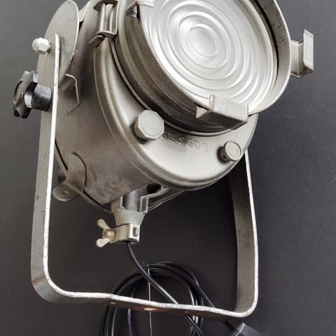 Denne vintage projektør er oprindelig produceret af ADB og brugt på Betty Nansens Teater gennem mange år. Modellen er en SP-1000. Højde 54 cm, længde 40 cm, diameter hoved 20 cm. En industriel lampe, der har flere anvendelsesmuligheder, og giver noget ekstra i den personlige indretning.