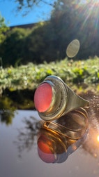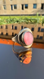 Vintage Herman Siersbøl sterling ring med en pink rosa quartz, som har et flot specielt skær, nærmest katte øje agtigt. Ringen har tegn på slid efter meget kærlighed, men charme trods alt. Størrelse 11.