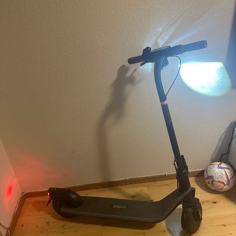 Segway - Ninebot - EL løbehjul - 55 km rækkevidde - med manualer og kryptonite lås med følger og slang til at pumpe hjul med dunlop konverter. Ny pris ca. 6.000 - FEJLER INTET og kører SUPER GODT. Er begrænset som loven foreskriver til 20 km i timen. Sælges da det ikke længere bruges - batteri er vedligeholdt og fungerer optimalt!