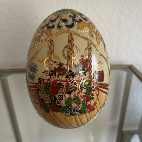 Det blev fremstillet i Kina før 1800, hvilket gør det til et unikt dekorativt samlerobjekt, der vil appellere til voksne samlere, der er interesserede i kunst og skulpturer. Æggets størrelse og indviklede design gør det til et blikfang i enhver boligindretning.