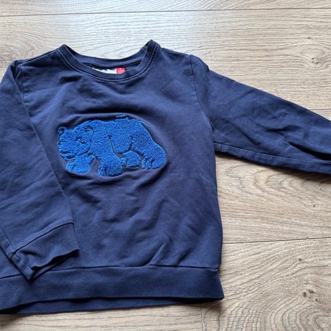 Sælger denne fine navyblå Lego Wear sweatshirt med hætte. Den er brugt, men i god stand. Printet på fronten og på ærmerne er lidt “revnet” (se billede 4). Den er størrelse 7 år / 122 cm