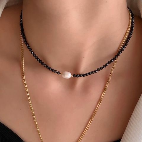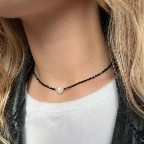 Super sød håndlavet choker I perle agtig flet. Passer de fleste halse, mål kan tages, ellers kommer de senere. Perlerne er af plastik med ligende perlemor. De er I farverne: to slags koral farvet og creme perlemors farve.