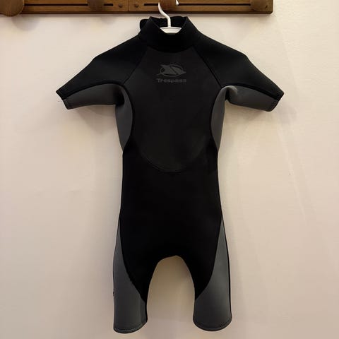 3mm junior Jumpsuit/fullsuit med smooth skin lukninger i arme, ben og hals. Brugt et par gange. Str L. Svarende til højden ca 140 cm