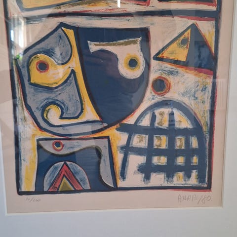 Farvestærkt og ekspressivt litografi, signeret og dateret 91, tilskrevet Barry Lereng Wilmont.