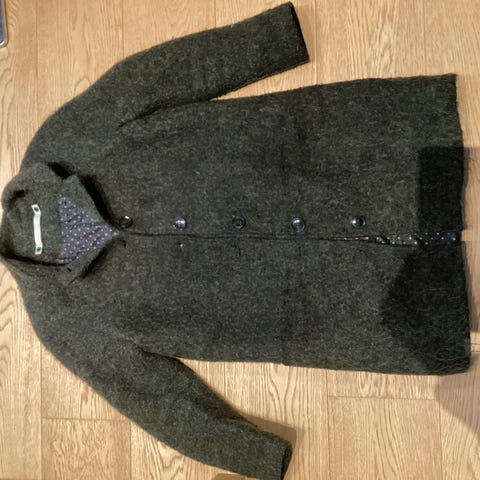 Jakke, str. 40, Coatpeople, Grå/grøn uld m strik krave, Uld m strikket krave - lynlås og knapper, Næsten som ny, Rigtig fin jakke