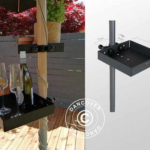 Praktisk og alsidigt: Bordet er designet til at holde drinks, snacks, kaffe og lignende, og kan nemt monteres på de fleste parasoller.