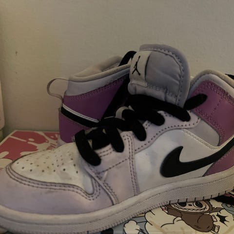 De er i pæn stand, men der er lidt slid på den ene side på den ene sko i det indvendige stof hvor snørebåndene ender (se billeder)