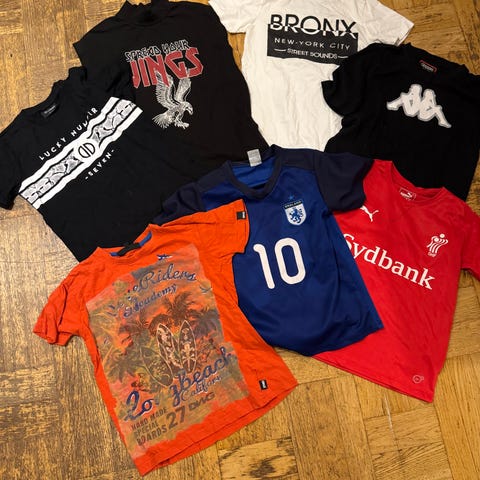 Priser og stand samt flere billeder for de enkelte t-shirts kan ses under deres egne annoncer.