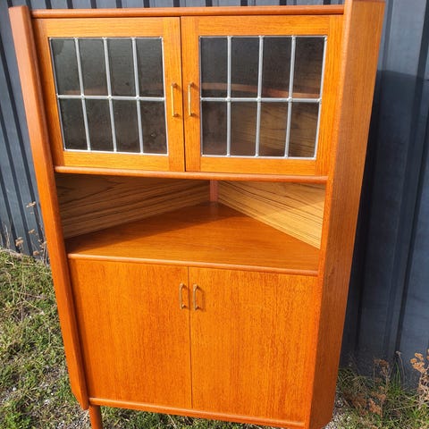Hjørneskab i teaktræ/fineret med 2 låger forneden og 2 låger foroven