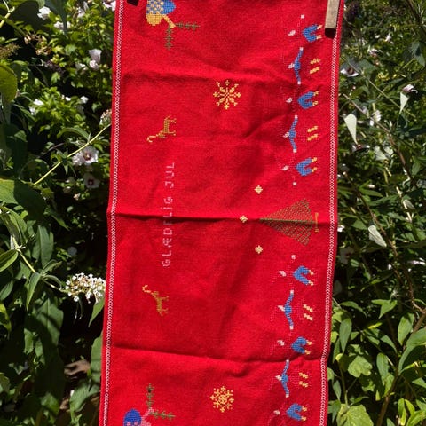 Flot juleløber i jute. Længde 94 cm, bredde 32 cm.