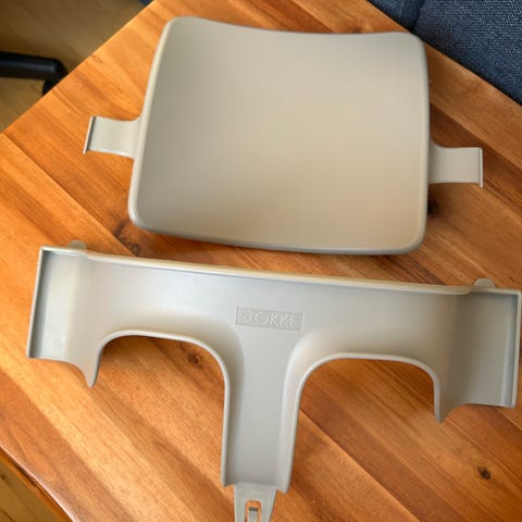 Diverse tilbehør til stokkestol. Nypris bakke 499, nypris babyset 399 nypris 5 punkts sele 399 nypris hynder 360. Sælges samlet