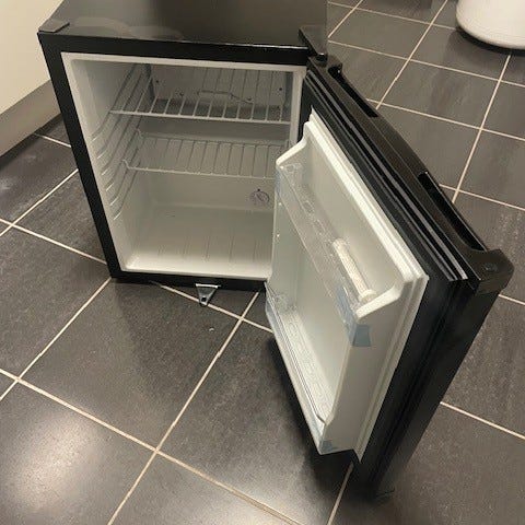 Et helt fint mine køleskab, ingen ridser eller noget, har bare ikke plads til det desværre ):