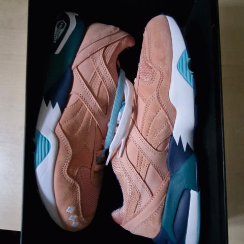 Skoene er et samarbejde mellem Puma og The Hundreds fra 2020. Skoene er kun brugte og ser ud som nye. De leveres med den originale æske, et ekstra sæt hvide snørebånd og originale kvittering