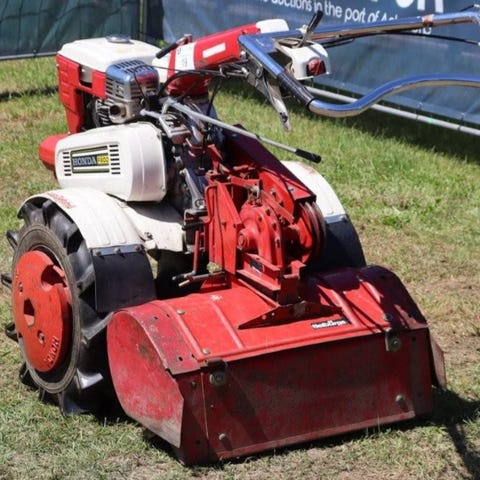Honda fræser med kost. Der medfølger ligeledes vogn med tip. Starter fint.