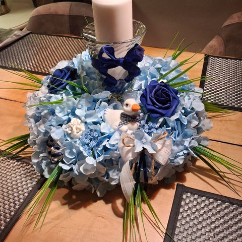 Billede 2: kr. 265 Stor borddekoration på glasfad m/lys